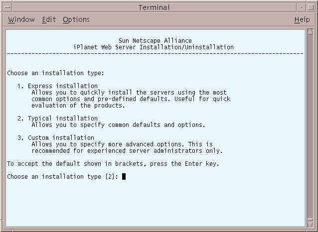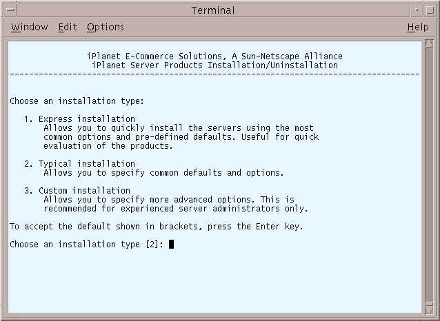 The Installation Type screen displays. Press Enter to accept a typical installation.