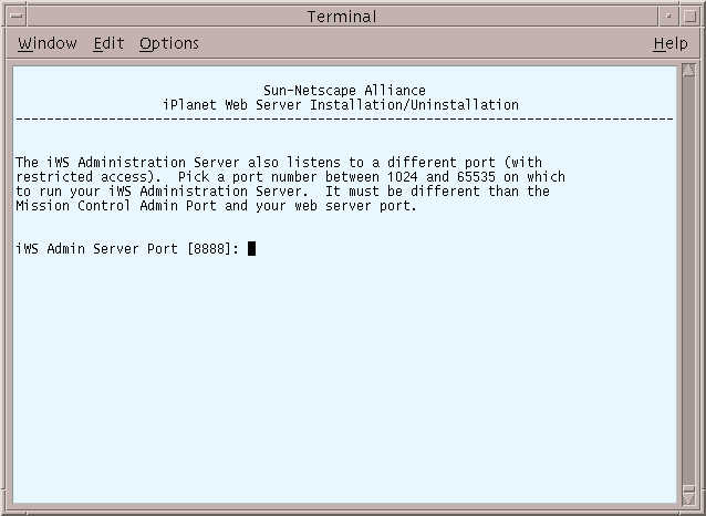 At the next screen, type your iWS administration server port number. You can use the default port number, 8888.