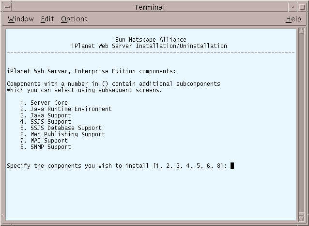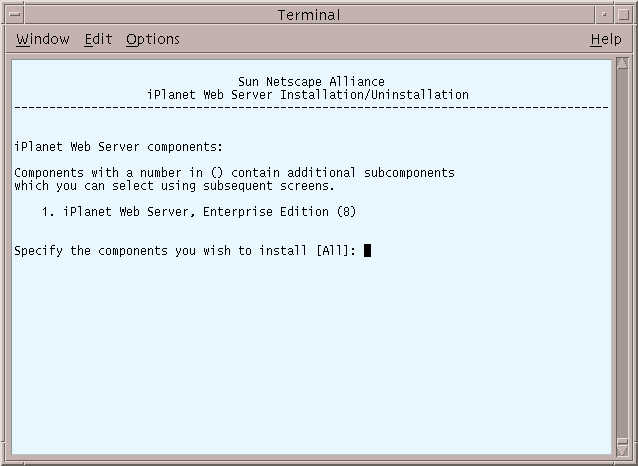 The Web Server Component screen displays. Press Enter to specify all the components.