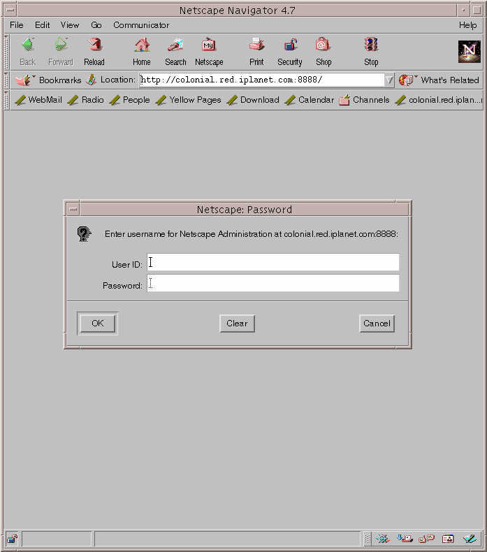 When this screen displays, enter your password and click OK. This is the password you specified in Step 18 of the iAS installation.