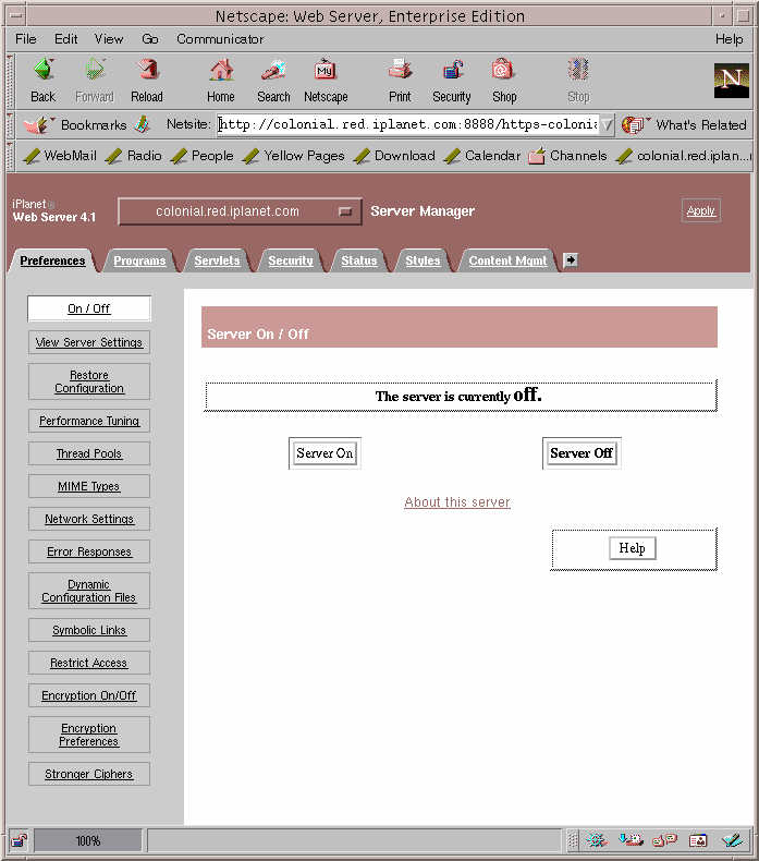 The Administration Server is a common front-end to all iPlanet servers. It receives communications from the Console, and sends them on to the appropriate iPlanet server. Your site will have at least one Administration Server for each server root in which you have installed an iPlanet server.