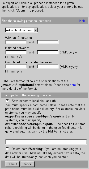 As Process Manager administrator, you can export or delete application user data that is no longer in use. You can only export and delete data from closed process instances. You cannot delete or export work items separately from the process instances that they are part of.