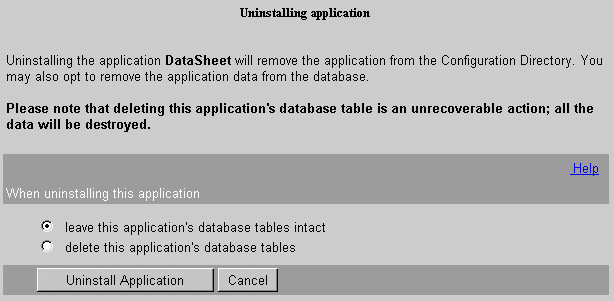 - Check the radio button to leave the application's database table intact or to delete it, depending on your situation.
