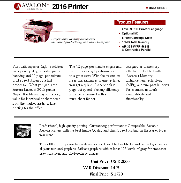 When the data sheet is built, all the pieces come together. Figure 14-6 shows a sample data sheet which uses the description.txt file and the image.gif file in earlier examples.