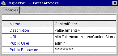 - In the Application Tree View window, right-click the content store and choose Properties, or double-click content store, or highlight it and click Inspect.
