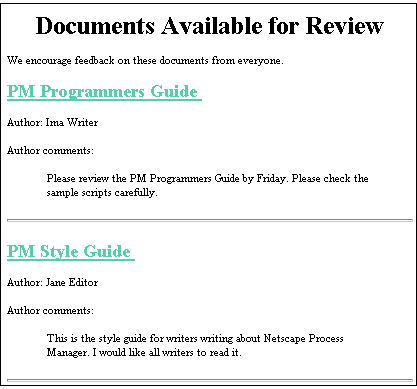Figure 11-5 illustrates the showList.html web page. This page is updated each time a document is submitted for review.