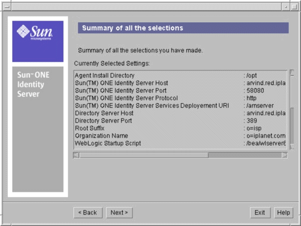 Installation Organization: Enter the name of the installation organization as used when installing the Sun ONE Identity Server