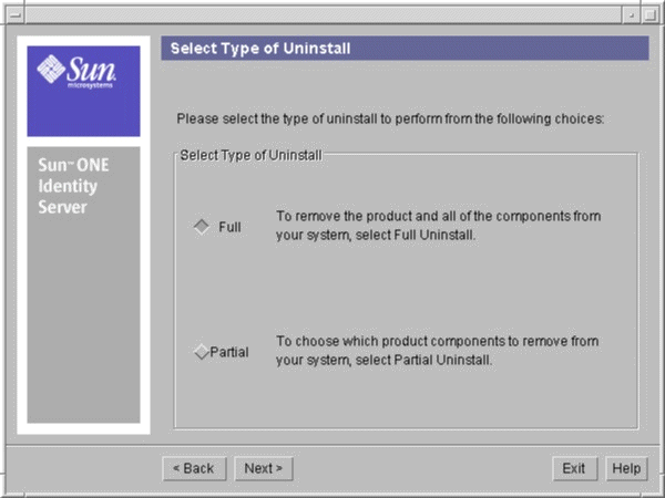 Figure 2-7    Uninstall Type Selection Screen ![]()