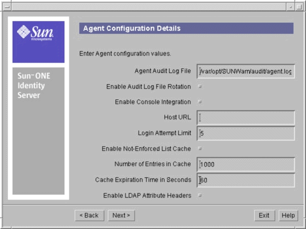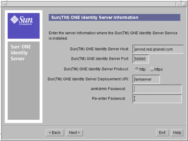 Sun ONE Identity Server Host: Enter the fully qualified host name of the computer system where Sun ONE Identity Server is installed.