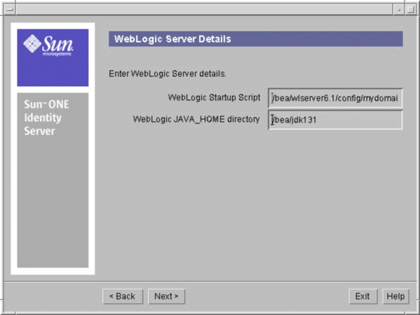 Enable Console Integration: Select this to enable console level integration of Sun ONE Identity Server with WebLogic Server Administration console.