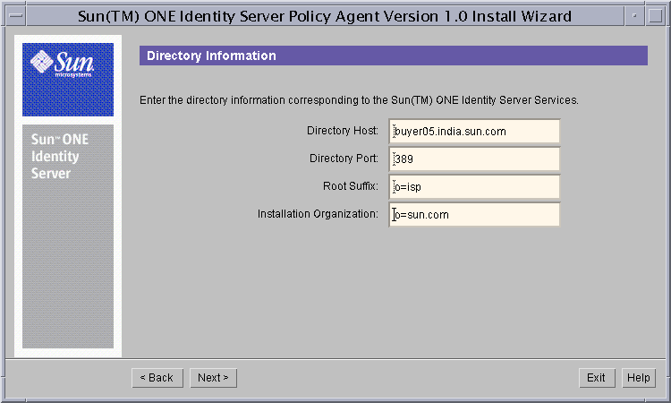 Installation Organization: Enter the name of the installation organization as specified when installing the Sun ONE Identity Server.