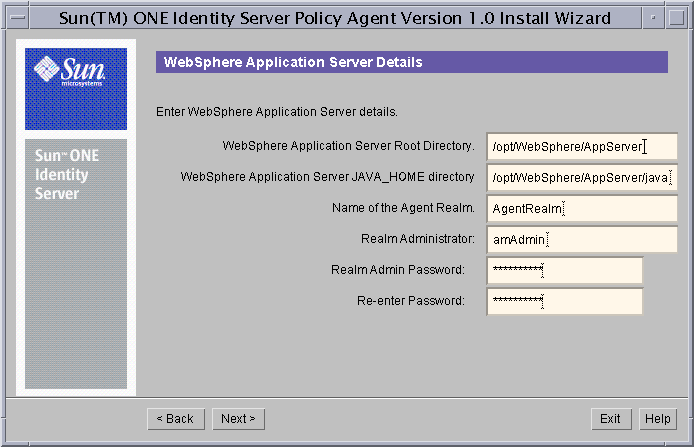 Name of the Agent Realm: Enter the name of the Realm that will be configured as the default realm to be used by the WebSphere Application Server.