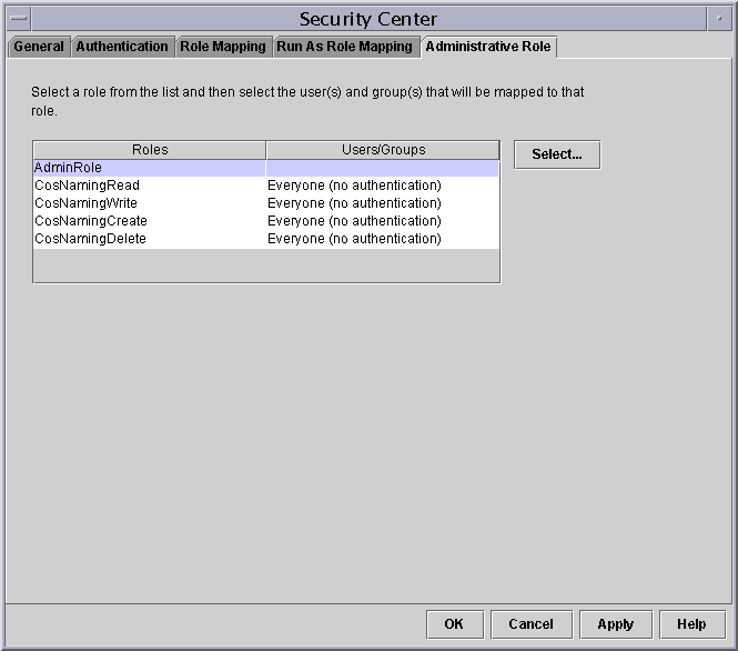 Start the WebSphere Administrative Console using the following command: In the WebSphere Advanced Administrative Console, choose Console > Security Center.