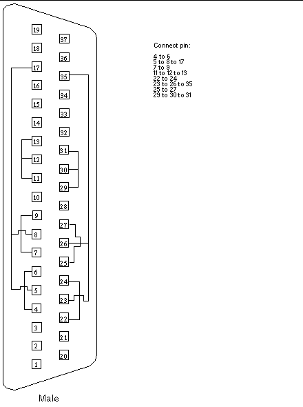 Use these wiring instructions for making a male 37-pin RS-449 loopback plug. This connector is also available from Sun (part number 530-1430).