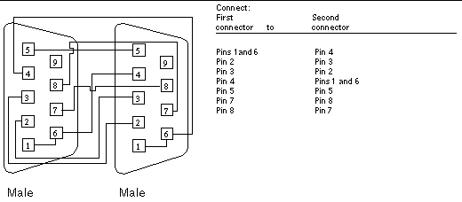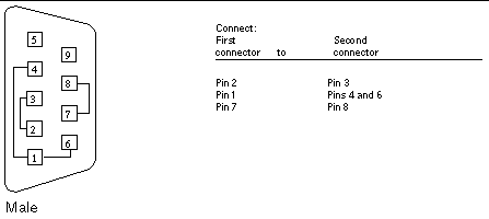 Use these wiring instructions for 9-pin RS-232 and RS 423 port to 9-pin RS-232 and RS-423 port loopback cables. Both connectors are male.