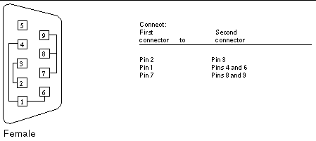 Use these wiring directions for female 9-pin RS-232 and RS-423 single-port loopback plugs. Use this loopback plug with the pcmciatest.