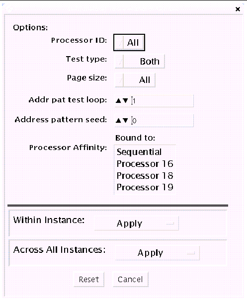 FIGURE 12-1 dtlbtest Test Parameter Options Dialog Box