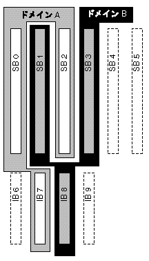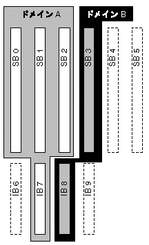 ドメイン構成情報はシステムボードスロットを複数のドメインに論理的に分割する方法を規定したもので、SC 上に保持されています。ドメイン構成には空のスロットと占有状態のスロットが含まれます。