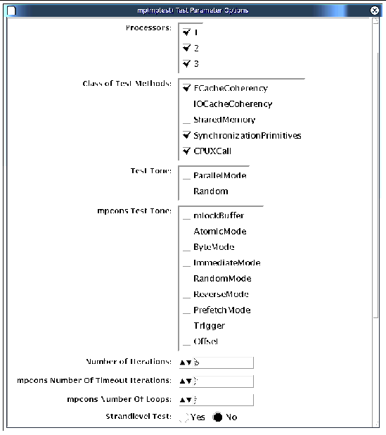 FIGURE 24-1 mptest Test Parameter Options Dialog Box