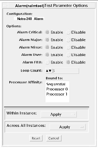 FIGURE 25-1 nalmtest Test Parameter Options Dialog Box