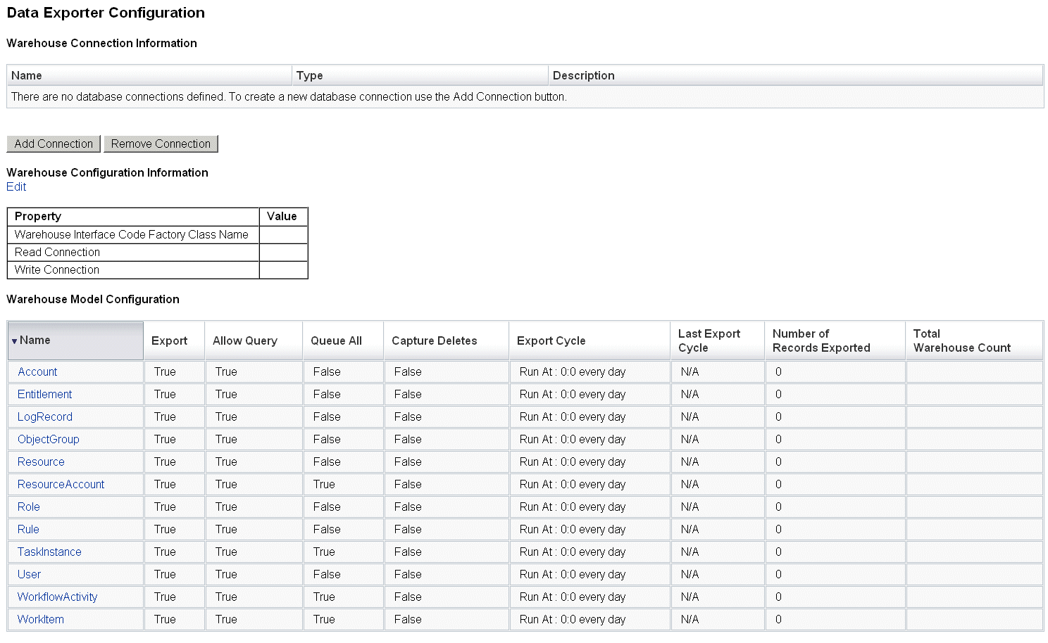 Identity Manager¿¡´Â Á¦ÇÑ ¾øÀÌ Ä¿Áö´Â µÎ °´Ã¼ ÁýÇÕÀÌ ÀÖ½À´Ï´Ù. Áï, °¨»ç ·Î±×¿Í ½Ã½ºÅÛ ·Î±×ÀÔ´Ï´Ù. µ¥ÀÌÅÍ ³»º¸³»±â´Â ·Î±× Å×À̺í°ú °ü·ÃµÈ À¯Áö º¸¼ö ¹®Á¦ Áß ÀϺθ¦ ó¸®ÇÕ´Ï´Ù.