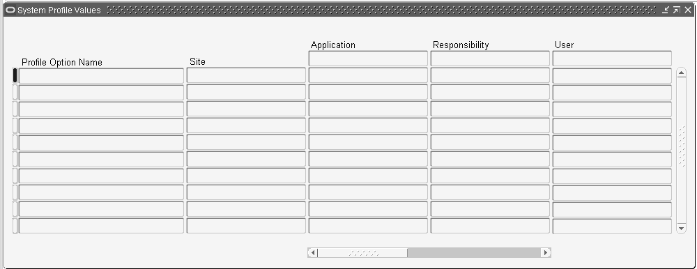 参照: Oracle E-Business Suiteユーザーズ・ガイドのユーザー・プロファイル・オプションでの作業環境の定義に関する項。