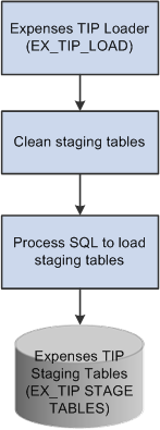 This diagram describes the Expenses TIP Loader process flow to the staging tables.