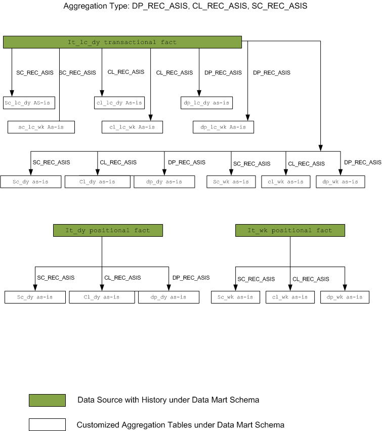 DP_REC_ASIS: fact re-calculation on reclassification day from item to department based on as-is. The batch program that uses SC_RC_ASIS aggregation type is a pre-requirement for the batch program that uses DP_RC_ASIS and both should have the same source table name under SRC_TABLE column.