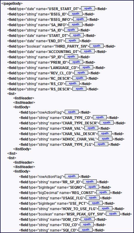 As with the business object, the business service's interface to the internal service is defined using its schema. The schema maps the business service's elements to the corresponding elements in the internal service program's XML document. Keep in mind that many back-end services have child table collections (e.g., a collection of input service quantities, or a collection of output bill lines) and therefore the definition of where a business service property resides can be sophisticated. For example, defining a business service property like "Weight" requires the implementer to define: