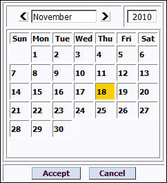 If the date field was blank, the current date is highlighted when the window first appears. If the date field contained a date, it is displayed.