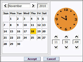 Select the date and use the toggle buttons (or enter) the time and then click Accept to populate the original fields.