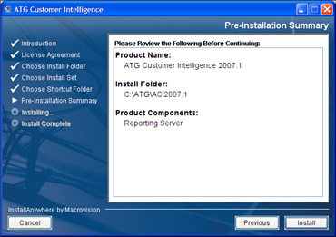 Verify the Pre-Installation Summary information, and then click Install.