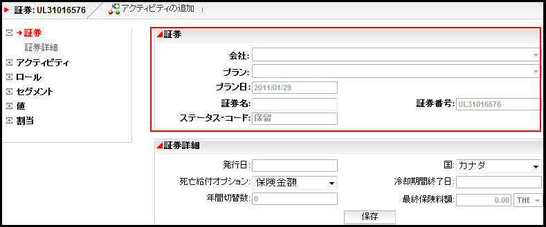「契約」画面のすべてのフィールドは構成可能です。そのため、一部のフィールドの名前は、次に示すフィールドとは異なる方法で付けられている場合があります。