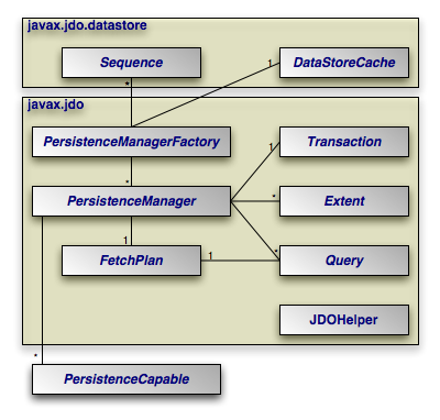 The diagram below illustrates the relationships between the primary components of the JDO architecture.