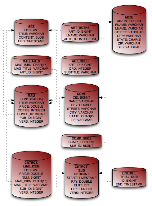 That goal has now been met. In the course of explaining JDOR's object-relational mapping metadata, we slowly built the requisite schema and mappings for the complete model. First, the database schema: