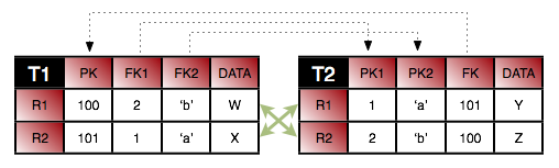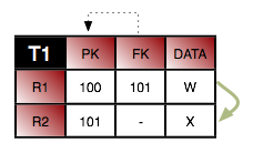 You may be wondering how to represent an inverse self-join. Because the source and target tables are the same, the naïve approach results in a mapping that looks identical to a forward join, which is obviously incorrect:
