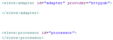 <wlevs:adapter id="helloworldAdapter" class="com.bea.wlevs.adapter.example.helloworld.HelloWorldAdapter" > <wlevs:instance-property name="message" value="HelloWorld - the current time is:"/> <wlevs:listener> <wlevs:channel id="helloworldInputChannel" event-type="HelloWorldEvent" > <wlevs:listener> <wlevs:processor id="helloworldProcessor"> <wlevs:listener> <wlevs:channel id="helloworldOutputChannel" event-type="HelloWorldEvent"> <wlevs:listener> <bean class="com.bea.wlevs.example.helloworld.HelloWorldBean"/> </wlevs:listener> </wlevs:channel> </wlevs:listener> </wlevs:processor> </wlevs:listener> </wlevs:channel> </wlevs:listener> </wlevs:adapter>