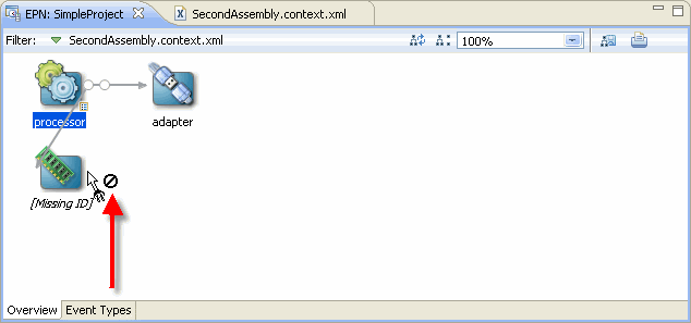 EPNエディタを使用すると、エディタの表面でアクションを使用してアプリケーションのEPNを作成および編集できます。EPNエディタで実行したほとんどのアクションによって、そのアプリケーションのアセンブリ・ファイルが編集されます。単一EPNアセンブリ・ファイルを使用するか、または複数のEPNアセンブリ・ファイルを使用できます(詳細は、6.2.2項「フィルタ処理」を参照)。
