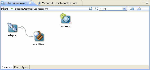 デフォルトでは、EPNエディタは単一Oracle CEPアプリケーション・バンドルのEPNとともにすべてのファイルから収集した情報を表示します。