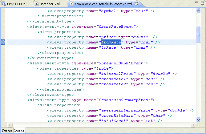 EPNエディタは、Oracle CEPアプリケーションのSpringコンテキスト・ファイルまたはOracle CEPサーバー構成ファイルから開くことができます。また、コンテキストまたは構成ファイルからEPNエディタを開くこともできます(詳細は、6.1.1項「プロジェクト・フォルダからEPNエディタを開く方法」を参照)。