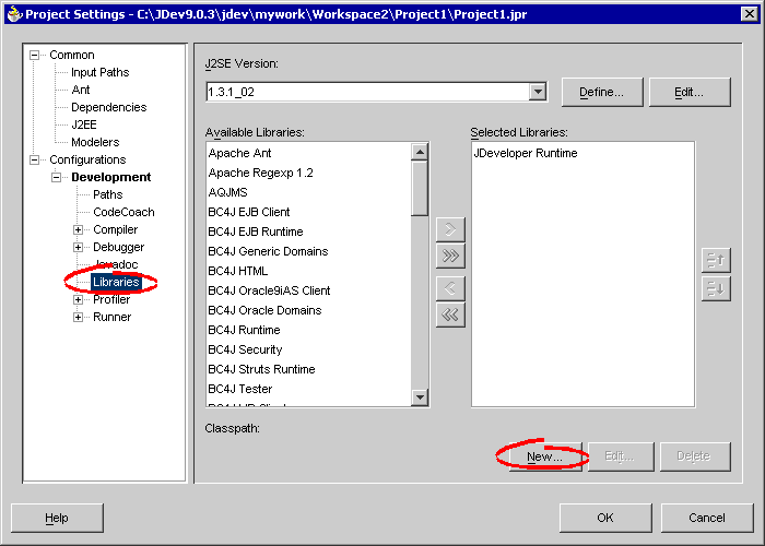 TopLinkをOracle JDeveloper 9.0.4以下で使用するには、次の手順に従って、TopLink JARファイルをOracle JDeveloperプロジェクトに追加します。