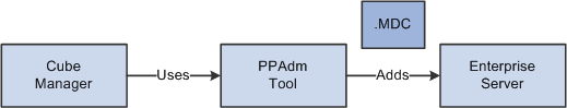 PeopleSoft Cube Manager uses PPAdmtool to add the .mdc file to the EP Server