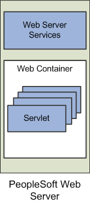 The web container (or servlet engine) is the J2EE environment in which the PeopleSoft servlets run. This component is embedded within the web server software. |