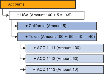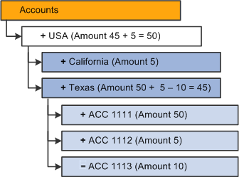 Each box in the diagram represents a unique member. This diagram is familiar to PeopleSoft Tree Manager users. In fact, PeopleSoft trees can play an important role in defining the hierarchy of an OLAP cube.