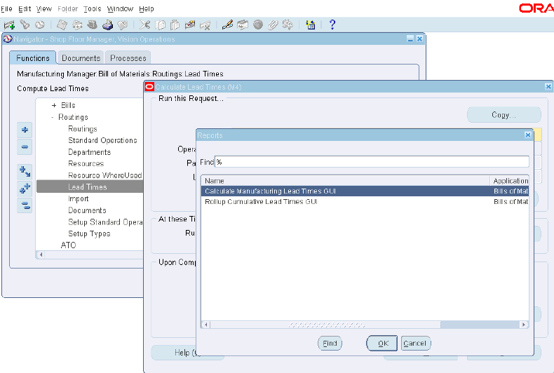 Select Calculate Manufacturing Lead Times GUI from the list of values in the Names field to calculate Manufacturing Lead Times