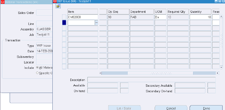 Issuing Lot/Serial Component to a Lot/Serial Assembly