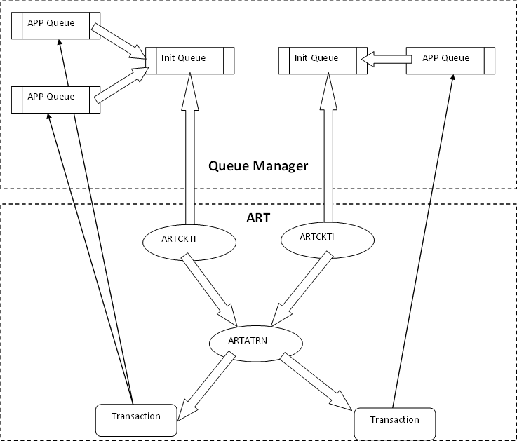 • The psc command shows that five new services are running, one is dedicated to the asynchronous transaction while each synchronous transaction (SA00 to SA03) is duplicated (ASYNC_SA00 to ASYNC_SA03) to allow them to run in an asynchronous mode.To use non-parallel asynchronous transactions, with a MAXACTIVE parameter exactly equal to one, the dedicated server is ARTATR1.Please refer to the section describing the reasons and the installation of the ARTSTR1 server to install the ARTSTR1 server.These transactions are launched when ASYNC_QSPACE for EXEC START is set with option INTERVAL or PROTECT.