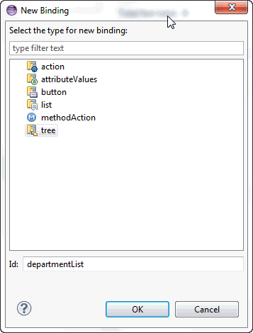- In the New Binding dialog, select Tree and enter the ID. Click OK. The binding is added.