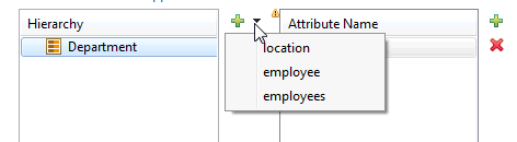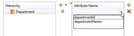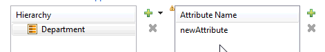 - Click Add (plus icon) in the Attribute Name section on the right to select the attributes of the entity data type you added to the Hierarchy section.