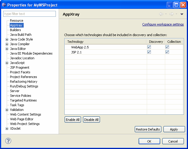 Provided by OEPE, AppXray technology analyzes the JSP pages, Java source files, resource bundles, and Web configuration files of your application and uses this information to provide validation and consistency checking across many layers of the application, as well as source code completion and hyperlink navigation.